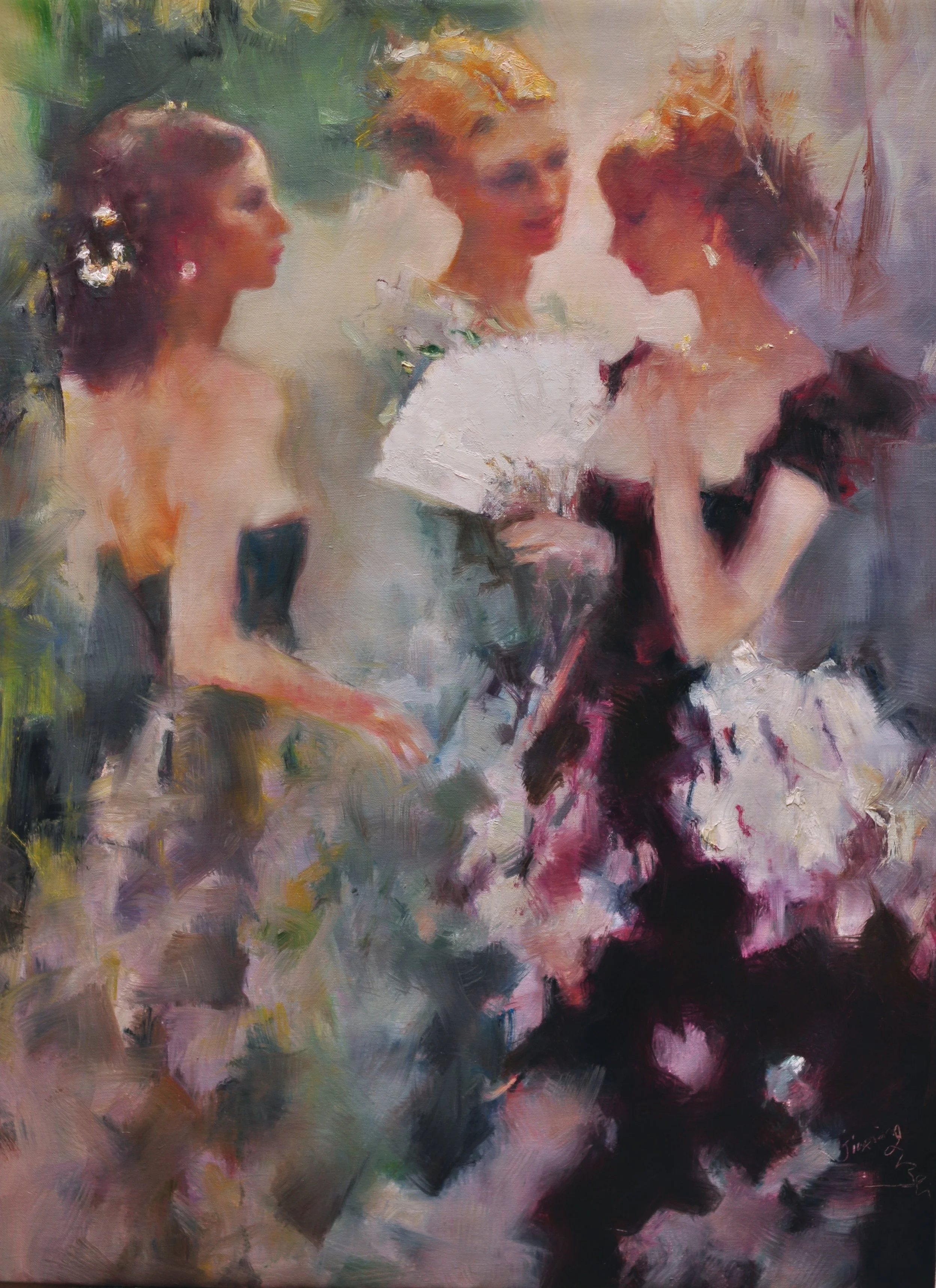 BEI Jiaxiang weaves an aesthetic network of overlapping Eastern grace and Western modernity using oil paint as thread, transforming the elegant figures moving between shikumen (stone gate buildings) and cafes into visual clues for interpreting the genes of Shanghai-school culture.